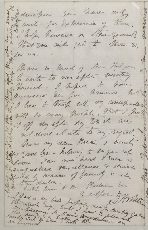 It was so kind of Mrs Hodgson to write to me after visiting Harriet. I hoped to have answered her from America, but I had to keep up my correspondence with so many people, that I put it off day after day till it was not done at all to my regret.