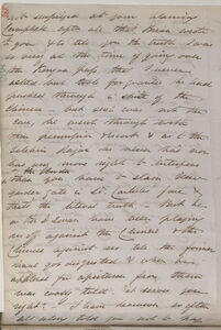 not surprised at your blaming Campbell after all that Brian wrote to you & to tell you the truth I was so busy at the time of going over the Kongra pass, that I never asked but took for granted he had pushed through in spite of the Chinese -- but such was not the case, he went through with their permission & escort & as to the Sikkim Rajah he never had nor has any more right to interfere with the border than you have to slam Kew Gardens gate in Ld. Carlisle's face & that's the literal truth -- But he or the Dewan have been playing us off against the Chinese & the Chinese against us til the former have got disgusted & when he applied for assistance from them was coolly told -- "it serves you right". -- I have however so often all along told you not to pay the smallest heed *3