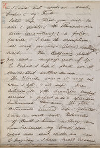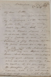 Courtenay has left Lord D[alhousie]. they have I know been on bad terms for 18 months; & as C[ourtenay] is such a thorough coxcomb, that I never expected the two to get on. Grey served as P.S. to G.G. he is a great friend of Campbells & son--in--law of my friend Welby Jackson. What C[ourtenay]. will do I know not, get some good app[ointmen]t: of course, probably in Calcutta. I go straight to Govt. House on my arrival in Calcutta, where if full, I leave for Colvile's where on many accounts I would rather be, but I am first bound to Lord D[alhousie]. & he would not like my preferring any house to his -- he it is said stays but 3 weeks in Calcutta but no one knows, Lady D[alhousie] they say goes up to Simlah [Shimla] at once, whither my Lord follows as soon as he can get away. I hope to be only a week in Calcutta.
