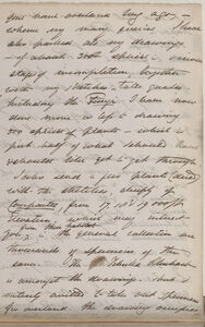 number have been there. Doubtless the Botany is far richer though not so new as Nepaul. Against Nepaul is the unvarying sameness in some degree of all the Himal. -- for it, the interest too is Bot[anical] geography, & the eclat of being the greatest Himal: traveller if I go in by Sikkim & out by Kumaon -- What are is your geography about to suppose Sikkim affairs would disturb the Khassya for scientific travelling? it may be have (may) Nepaul. As to Bhotan [Bhutan] I would not go there for all the world without 500 men in front & 500 behind *4 me if the Rajah was ever so civil -- but the Cossyah have no more to do with those countries than Kew. Thomson is well & sends best regards, he is a capital fellow amiable articulate & very clever a regular Planchon, but with twice the steadyness[sic] of character & has no crotchets.