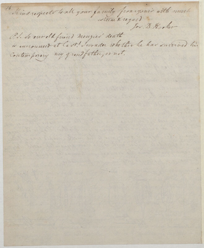 Kind respects to all your family from yours with much steem & regard | Jos. D. Hooker.