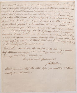 full trust & confidence you always placed in her. I nearly forgot what I have often thought of asking you, whether you could not send something to Aunt Vavasour? Without mentioning my name of course, but to put whatever you think proper with some larger gifts of her other friends -- If it were possible to do it without giving offence I should like you to give £10 or £20 in that way, or more if you think it proper, & will not use the money I send home, which however you had much better do. Do it if you possibly can. I intend every day to write to Gurney*7 but I have a great aversion to send notes so for he was a most kind friend to me & none wished [me well more heartily than Gurney does, it is a very delightful thing to think that he is giving every satisfaction to his employers & friends at home.