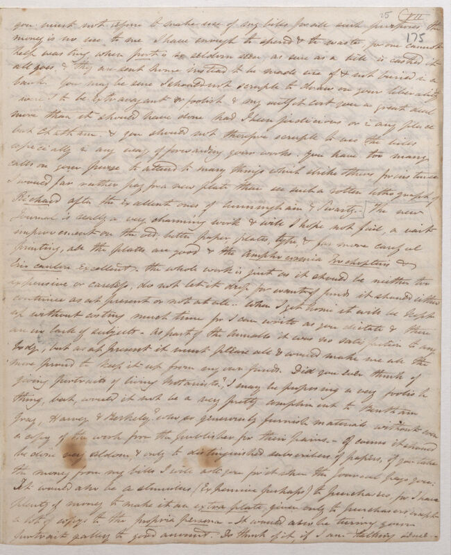 You are making your own private sacrifices to Botany & not allowing me to make any equally private, & to tell you the truth I am apt to be jealous. If you will not use the money for house-hold affairs you cannot please me better than by forwarding the cause of Botany with it.
