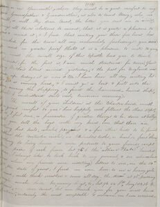 near or in Yarmouth, where they must be a great comfort to my good Grandfather & Grandmother, as also to Aunt Mary, who, no doubt, is well. My dear Aunt, the letter you sent me so vividly brings all these relations to mind, that it is quite a pleasure to read & reread it; & I find that writing you these few lines has finished for the time all my melancholy forebodings: you surely need no greater proof that it is a pleasure to write to you; nor must the small size of this epistle lead you to think otherwise; for the fact is, I am much straitened for time. Your's[sic] & my Mother's letters have arrived yesterday; & the post for England was made up today: it is now 8 PM: I have been all day writing letters: it is raining hard; & I must get a boat & pull into the cove among the shipping, to find the homeward bound ship, which I understand sails early tomorrow morning) --