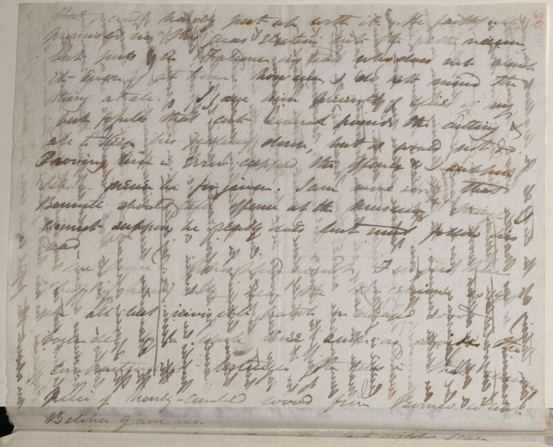 6. There is no signature though this appears to be the end of the letter. The letter is written in the hand of Joseph Dalton Hooker. There is the faded impression of a name written at the bottom left of the page which has most likely transferred from another page or letter. The name is very faint but appears to read "Thomas Palgrave".