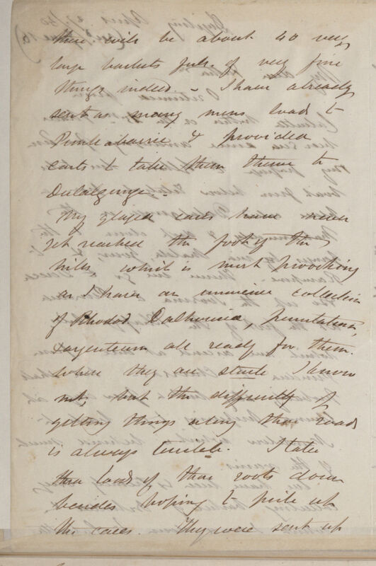 My glazed cases have never yet reached the foot of the hills, which is most provoking as I have an immense collection of Rhodod[endron]. dalhousieae, punctatum, & argenteum all ready for them. Where they are all stuck I know not, but the difficulty of getting things along these roads is always terrible. I take three loads of these roots down besides hoping to pick up the cases. They were sent up