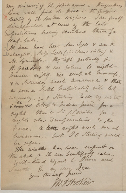 We have had here Mrs Lyell & son & daughter, Miss Lyell (Sir Cha[rle]s*2 sister) & Mr Symonds -- they left yesterday for the Gair Loch [Gairloch] & we follow tonight. Tomorrow night we sleep at Inverness, & on Saturday reach Aviemore, & then as soon as Scotch hospitality will let us away, go to Stirling to see my sister & a an old college & India friend for a night -- then to Sir J Colvilles*3 for 3 nights near Dunfermline & so home. A letter might reach me at Aviemore, -- but P.O. Stirling would be safer.