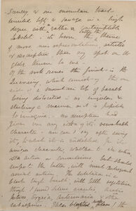 Lock[sic] Arnish & the Coolin[sic] [Cuillin] hills are the most interesting features of Skye & thither we went 2 days ago, by crack 9½ miles to Sligachan, a lone tourist hotel in a wilderness of bog. Thence an 8 miles march up a very broad uninteresting flat mound[?] glen by a rude path over stones, bogs & torrent beds, takes you to a steep rise of some 1500 ft at top of which you see the lower end of the far famed Loch Arnish & here the guides try to persuade you that they have done their duty. We however went on a few miles further along the stub[?] flank edge of the valley overhanging the Lake & got a good view of its upper end which