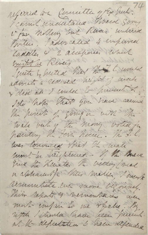 referred to a Committee of Experts. I cannot understand Board going in for nothing but Rivers untried Boilers. I advocated 4 improved saddles[?] & 2 accessories which might be Rivers.