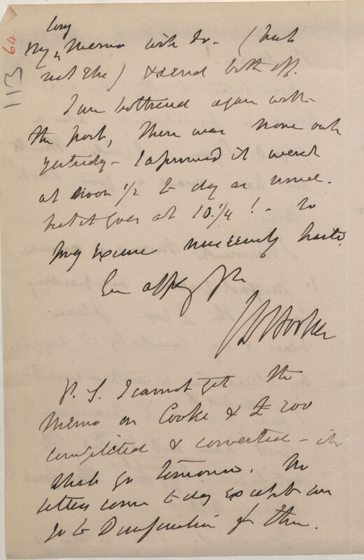 P.S. I cannot get the Memo on Cooke & £200 completed & corrected -- it shall go tomorrow. No letters come to day except we go to Dunfermline for them.