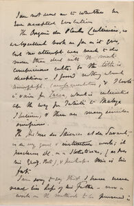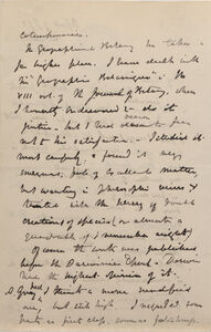 In Geographical Botany he takes a far higher place. I have dealt with his "Géographie Botanique" in the VIII vol[ume] of the Journal of Botany, when I honestly endeavoured to do it justice -- but I had reson reason to fear not to his satisfaction. -- I studied it most carefully, & found it very unequal; full of excellent matter, but wanting in philosophic views, & tainted with the heresy of double creations of species (or almost a quadruple, if I remember aright).