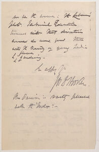 Do not think that I doubt Clarkes' identification; I think his work quite marvellous as respects both identification & nomenclature, -- as far as I could judge in reviewing the "index" in mss & proof, -- but he makes strange blunders in descriptions & drawings too! & often in descriptive language his style is very defective [.] Still I think his work so far is of surpassing use; & after all, except in theoretical morphology, he cannot ere err too wildly amongst Cyperaceae[?]