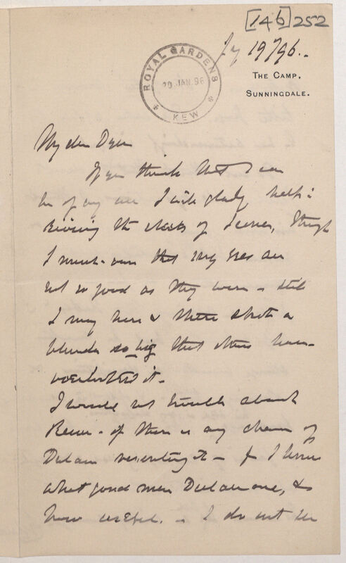 If you think that I can be of any use I will gladly help: reviewing[?] the sheets of Icones, though I must own that my eyes are not so good as they were -- still I may here & there spot a blunder so big that others have overlooked it.