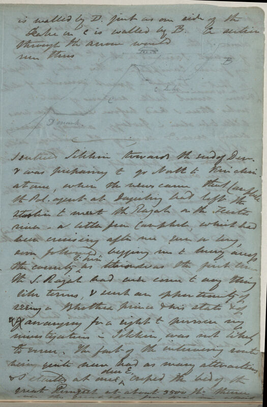 This is to be a continuation of my travels amongst the Snows of Kinchin junga [Kanchenjunga], the first part of which, including my Nepal journey I detailed in a letter to Lyell, which he will forward to you: -- this relates to Sikkim altogether.
