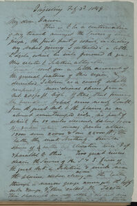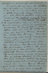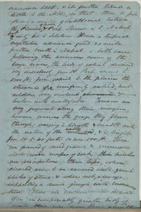As to dip I can give you very little information— I have taken very many; the great majority are NE & NW. The confusion & dislocation of the strata above 12000 ft is extreme. witness the isolated peaks *1 capped with Strat. Below 12000 the forest is a great impediment to all observation. My impression is that much of the Quartz is pluturic Plutonic. I have seen broad veins through mica schist, against the strat. & emerging along with fragments of the mica schist, which was baked to excessive toughness all along the vein. There is much strat. Quartz besides. I have an impression that much of the Plutonic rock between the real granite & strat. is the latter fused & shot through its unfused neighbour -- I think this has taken place to an immense extent, but have nothing to shew[sic] but mineral specimens. Mineralogy or Petrology is far too much neglected by *2 Geologists, I would have given worlds for Henslows knowledge of the metamorphosis of mineral masses.. I am sure from the appearance of the garnets mica & Feldspar that many of these are derived from the gneiss fused & its constituents rechrystallized[sic] -- I have seen little if any Hornblende augite or volcanic mineral whatever -- at least I did not recognize them -- no metals or chrystals[sic] or nice things for a cabinet. I fear I have missed the Feb[ruar]y. steamer with this. Send it to Lyell & change with him -- Sincere regards to Mrs Darwin & to the Wedgewoods & to Bell & all such old & dear friends you may see. Love to the childs