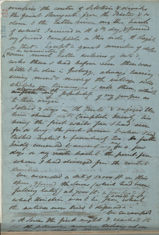 I staid[sic] 3 days on the Teesta & enjoyed the time with Campbell keenly, his being the first white face I had seen for so long; the first person to whom I had talked English & familiarly too. He further kindly consented to accompany me for a few days, on my route way back to the point from whence I had diverged from the route to Kinchin.