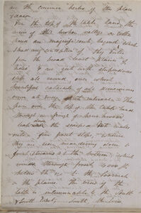 the season was greatly too early for these. We left the Soormah at Chattuk[?] a place you will find on the map, & spent the day with Mr Inglis, brother of our host here-- from this the Khassya are seen rising in table topped ranges to the N. very precipitous with roaring cataracts pouring over their scarped flanks, they in no way resemble the Himal[aya]. As seen from the plains; -- these as I say, rising in mural[?] form, & the valleys receding in amphitheatres of cliffs, & the tops being long & tabular, -- the Himal[aya] again rise in ridges, their valleys have sloping (however steep) sides & the tops are more rugged.