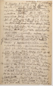 As we approached the city & when still a days [word crossed out, illeg.] 18--20 miles off, the tower of the great mosque appears on the horizon, see the description of Morocco in the Imperial Gazeteer[sic]. the ground is more covered with bushes of white Atriplex with Zizyphus[,] Salicornia & Lycium barbarum a few streams lined with glorious bushes of Oleander in full flower, wind across the plain, & the subterranean courses of others are marked out by series of wells sunk down to them through the gravely soil by the Arabs for purposes of irrigation but nothing of the city is seen till it is quite reached, its position only[?] is marked out in the near distance by groves of Date Palms (which do not ripen well), & by a few more mosque towers.
