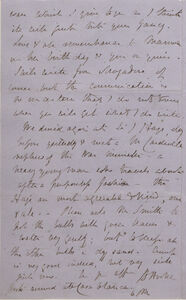 We dined again at Sir J Hays, day before yesterday & met a Mr Cardwell nephew of the War Minister -- a heavy young man who travels about after a purposeless fashion -- the Hays are most agreeable & kind, one & all. -- Please ask Mr Smith*6 to pot the bulbs with green leaves & water very gently; but to keep all the other bulbs in dry sand. Crump*7 is very good indeed, but very sick just now. Ever y[ou]r aff[ectionate] | J. D. Hooker[signature]