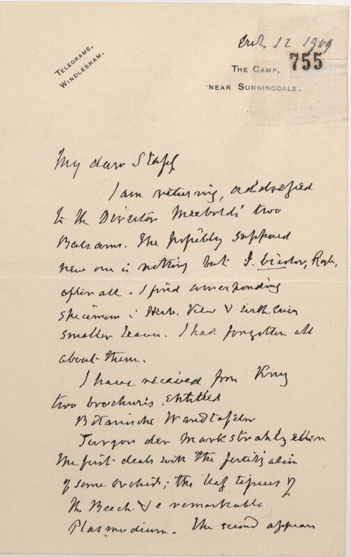 I am returning, addressed to the Director*2 [Alfred Karl] Meebold's*3 Balsams. The possibly supposed new one is nothing but I[mpatiens] bicolor Royle after all. I find corresponding specimens in Herb[arium] Kew & with even smaller leaves. I had forgotten all about them.