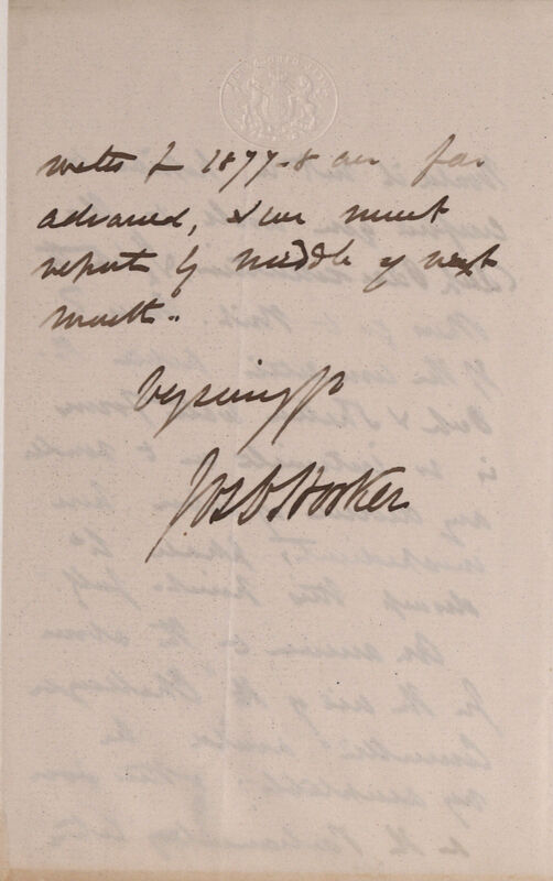 V[er]y sin[cere]ly y[ou]rs | Jos. D. Hooker | [signature].