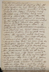 minutes for Tea at Peppins tents & I took horse at dusk for alas I am quite blind in the dark. -- the mulish stubborn intractable unshod Tartan pony never missed a foot sharp rocks, deep strong torrents, slippery patches, pitch dark, were all the same to him. Except in action they are sorry looking beasts, but the Singtam Soubah full 16 stone weight, rode his the whole 30 miles of rocks, stones, streams & mountains & except to stop & shake themselves like a dog with a violence that nearly unhorsed me they shew[sic] no signs of tiring. I should like to stay here some time but cannot get food up the road between this & Choongtam is so bad that [1 word crossed out, illeg.] The coolies can carry little more than their own food & blanket. The unlucky Singtam Soubah is in an agony to be gone, & as I shall go from Choongtam to the Lachong pass not 12 miles East of this Pass I shall get probably the same plants there, but that is a Pass I fear 19000ft high (woe's me for my head & stomach) & does not debouche on, but descends to this same plateau 10 or 12 E[ast] of Kongra Lama. & of Kinchin jow -- The road from Choongtam is good -- Fever rages below Chres on to Dorjiling. My people behave admirably well I have not a single complaint but it is very hard to see a poor lad come in his load left behind staggering with fever caught by sleeping in the valleys below Dorjiling, eyes sunk, temples throbbing pulse at a 180 120