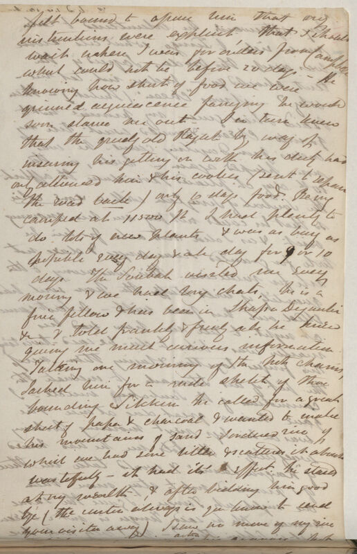 We went to the Pass & into Thibet yesterday, the Saubah of Lachen my arch enemy the guide. he has made 100 rude apologies -- the Chinese had threatened would cut his head off &c. I answer that an English man always carries his point & that days weeks & months are all the same to me. He vows he will tell no more lies, -- not so much as that hiding all but the very tip of his little finger. That now we are friends he will shew[sic] me every--thing & I must visit his wife in his black Tent on the frontier. Now the tables are turned & the Bhotheas are as civil [in] communication & zealous in good offices as they were before