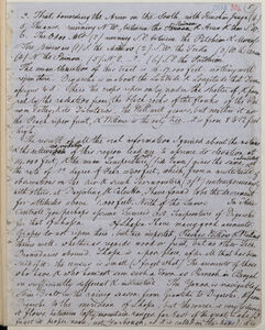 The unsnowed space, between No. 5 & 6, is very great. East of 1. both the Snowy Himalayah arrest & the lower ranges sink greatly. I am now nearly due South of 1 (S.10.° W.) & see the horizon, to 30.° East, without a snowy Peak or Elevation. The Snow commences again, East of the Dihong, which I do not doubt is the Brahmapootra & Yarou. All the Rivers, mentioned above, as between the groupes[sic] of Snows, have their sources in a small, well defined Range, South of the Yarou. That range forms the boundary of Nepaul. West of Gossai--Than, -- it did form the boundary East of it, before the war between Nepaul & Thibet. East of Gossain--Than, there is no natural boundary; except where the spurs of the mountains, East & West of the exit of the Arun, constitute one. The Thibet Boundary of Sikkim is Kinchin--Junga, to the West; & the range between the Lachoong & Teesta in Thibet,-- which is a westerly spur from Donkiah, which last runs South for 40 miles, via snowy Meridional Range, Chumalari does so, too; & the Chinese have drawn the Line, South from the Eastn. flank of the Donkiah, for as many make miles, & then North again, from the West flank of the Chumalari. This V--shaped bit includes great part of the Machoo's course, & the Town of Puri: it is interposed between Sikkim & Bhotan [Bhutan]. The Palchion Valley is as low as 6,000 feet in the
