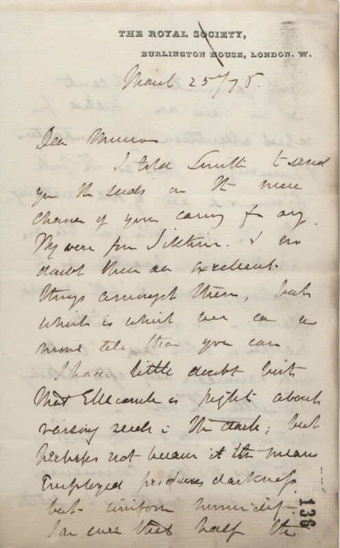 I told Smith to send you the seeds on the mere chance of you caring for any. They were from Sikkim & no doubt there are excellent things amongst them, but which is which we can no more tell than you can.