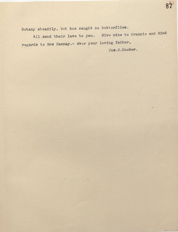 Botany steadily, but has caught no butterflies. All send their love to you. Give mine to Grannie and kind regards to Mrs Hannay.-