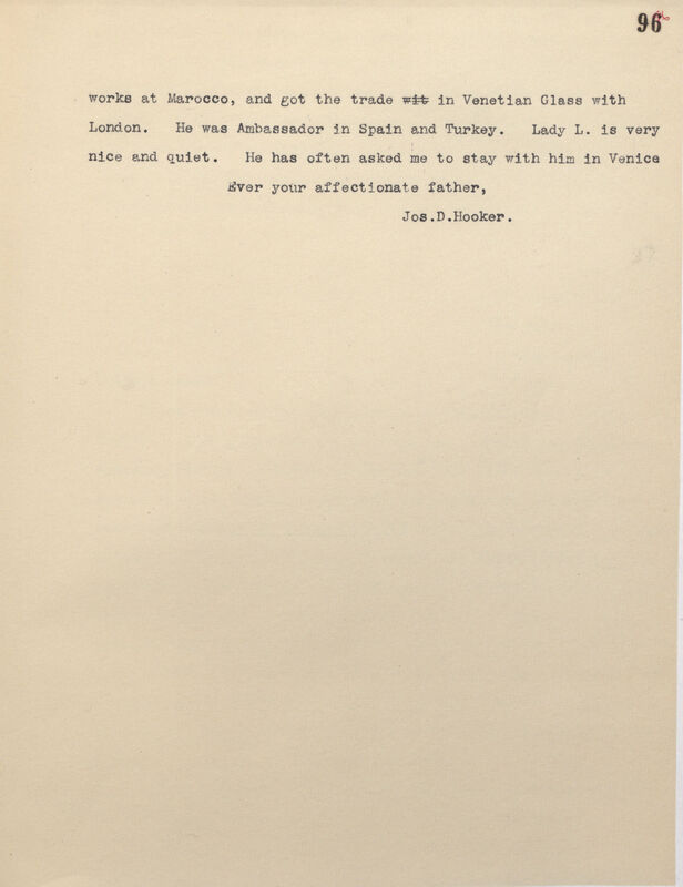 works at Marocco, and got the trade wit in Venetian Glass with London. He was Ambassador in Spain and Turkey. Lady L. is very nice and quiet. He has often asked me to stay with him in Venice[.]