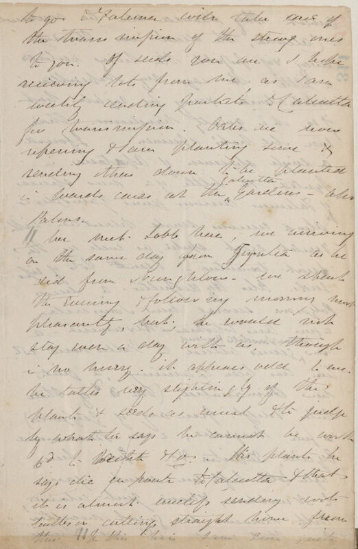 We meet Lobb here, we arriving on the same day from Jyntea as he did from Nungklow -- we spent the evening & following morning most pleasantly, but he would not stay even a day with us, though in no hurry, it appears odd to me he talks very slightingly of the plants & seeds as usual & to judge by what he says he cannot be worth 6d to Veitch & Co. His plants he says die en route to Calcutta & that it is almost useless sending roots bulbs or cuttings straight home from there.