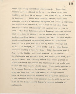 which that of any individual could command. Since then, Jessore[Jashore] has been offered to Gurney; the place is not very healthy, and there is no society; and under Dr. Bell's advice, he declined it. Still more recently, Darjeeling has been proposed to him, - a temporary employment and involving expenses, but otherwise so desirable, that I wish he had taken it, especially as these refusals may tell against him, in time to come. When Lord Dalhousie offered Jessore[Jashore], there was nothing else to be had, no vacancy; and my advice was to accept it. pending something better. However, Dr. Bell is a more experienced counsellor, and thinks Gurney worthy of the Calcutta[Kolkata] Hospital, or a good station, close by Bishop's College and which, it is alleged, will soon fall; and therefore Gurney preferred risking a race for them. Older Candidates are, I fear, in the field; and I feel anxious for the result. Lord Dalhousie was extremely kind, and asked him to dine, just before I left; and I am only afraid that common justice to higher Claimants may prevent his bestowing upon my uncle what we must all wish that he should have: I have again written to the Governor General on the subject; and I trust to learn. on my way down the river, the result of the application. There is little danger of Gurney's not doing well ultimately. if the Governor General will remember what he said to me, and if he is not disgusted with Gurney's repeated refusals of employment.