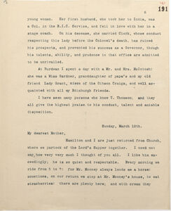 Hamilton and I are just returned from Church, where we partook of the Lord's Supper together. I need not say how very very much I thought of you all. I like him exceedingly; he is so quiet and respectable. Every morning we ride from 5 to 7: for Mr. Mooney always lends me a horse: sometimes, on our return we stop at Mr. Mooney's house, to eat strawberries: there are plenty here; and with cream they
