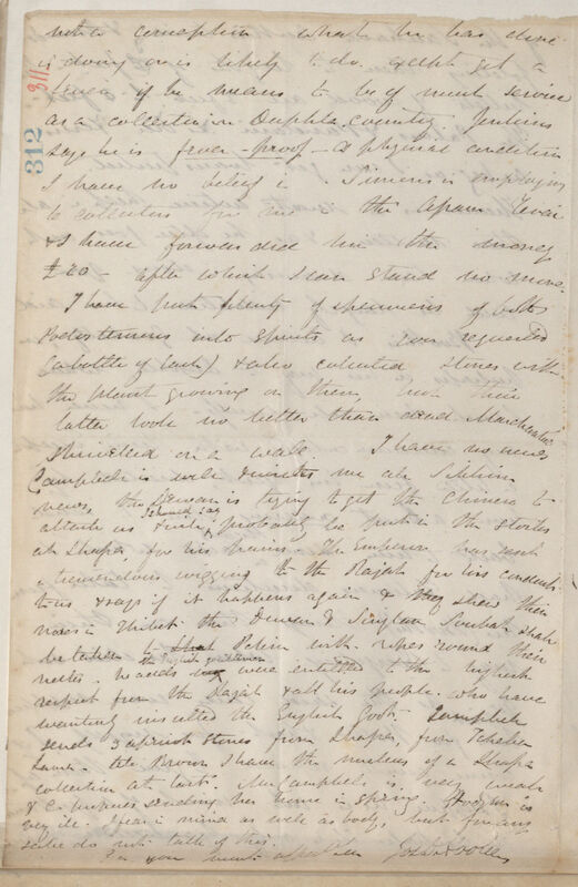 not a conception what he has done is doing or is likely to do, except get a fever if he means to be of much service as a collector in Duphla County. Jenkins says he is fever-proof -- a physical condition I have no belief in. Simons is employing 6 collectors for me in the Assam Terai & I have forwarded him the money £20-- after which I can stand no more.
