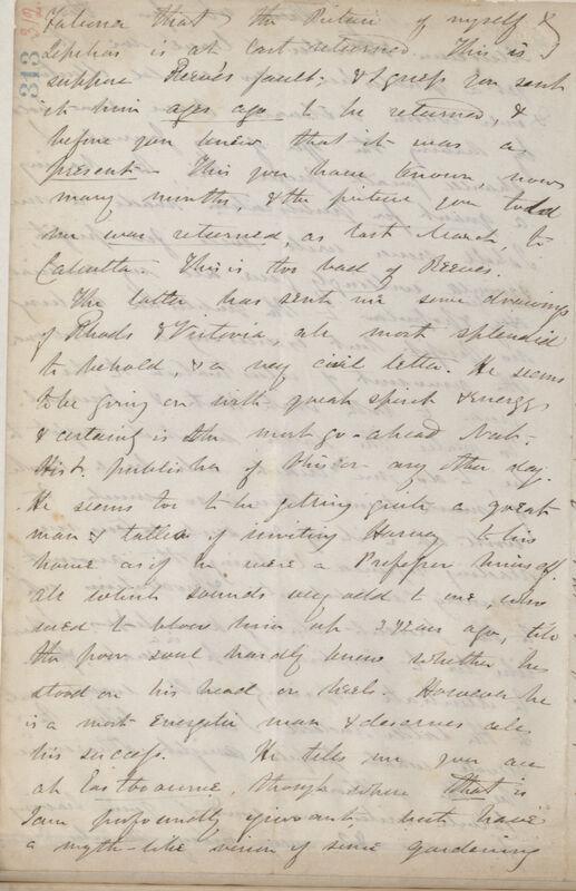 Falconer that the picture of myself & Lepchas is at last returned. This is I suppose Reeve's fault; & I guess you sent it him ages ago to be returned, & before you knew that it was a present -- This you have known, now many months, & the picture you told me was returned, as last March, to Calcutta [Kolkata]. This is too bad of Reeves.
