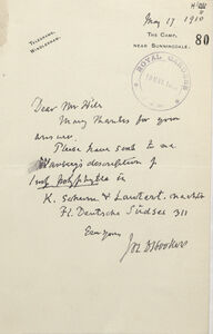 Letters from J D Hooker: Miscellaneous