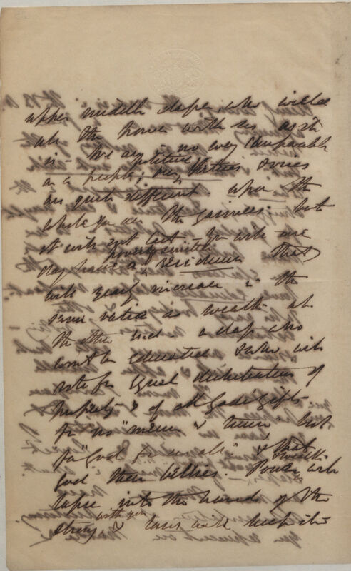 clearly wrong. The error is in the B.A assuming that we are a "free nation." We are nothing of the sort, and the masses do not wish to be so -- they are engaged in the struggle for existence & care nought for freedom or politics so we have bribery & corruption in all our elections even down amongst the lower educated classes -- rampant. Take away bribery:-- & other extraneous motives for voting & scarce any would vote but the middle & upper middle classes. The more I compare our papers, the more I see, that you have no representation of the lower middle & lowest classes, except perhaps in n[ew]. York of the masses in short, any more than you have representation of our Aristocracy. You represent our middle &
