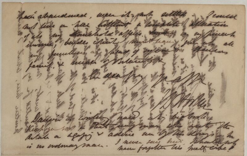 Darwin is working hard at big book. Keep your eye on that young man who wrote the article on Agassiz & advise me of his doings -- he is no ordinary man. I never saw him. I should not have forgotten his pretty wife!