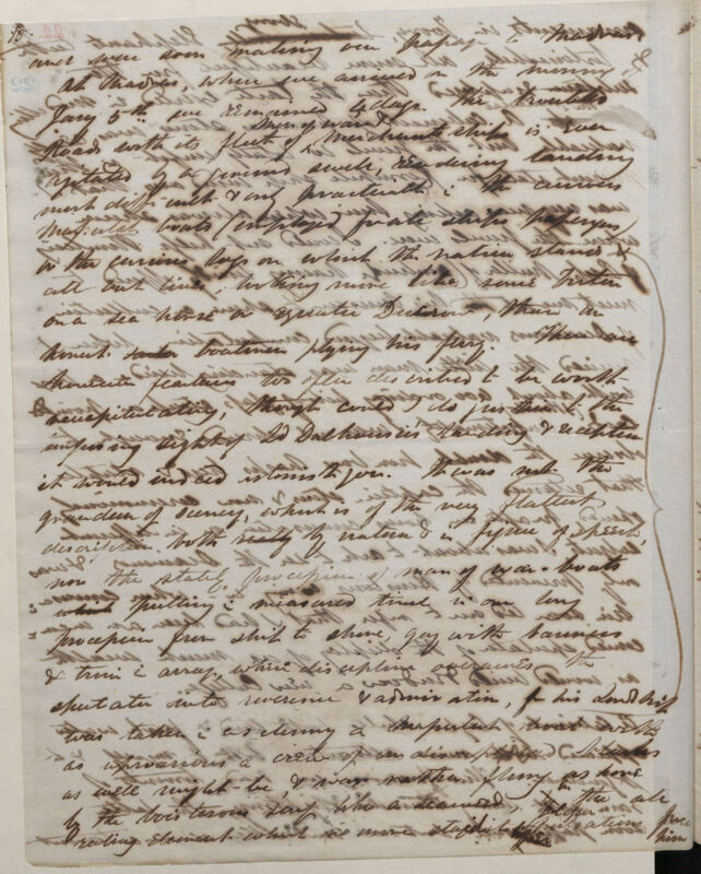 additional charm to the scene in short the association of three giant steamers with a tropical cove of singular beauty & peacefulness is too novel & the contrasts it affords too violent to be regarded without a repetition of the same feelings with which when a boy I saw the first steamer disfiguring Lochlomond[sic] & a stage coach established [two words deleted, illeg.] between Trossachs & Culloden. The contrast was further heightened here by the enormous dimensions of the vessells[sic] which rather looked as if left by a trick & than as having found their own way in; the diminutive size of the land locked harbor, in comparison with the boundless ocean a stones throw beyond; & the long shallows, of the natives with their rude outriggers & paddles, clustering round them the mightiest inventions of an age triumphing in inventions.