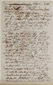 and were soon making our passage to Madras. At Madras, where we arrived on the morning of Ja[nua]ry 5th we remained 4 days. The troubled Roads with its fleet of Men of War & merchant ships is even agitated by a ground swell, rendering landing most difficult & only practicable in the curious Massalah boats (employed for all ships passengers) or the curious logs on which the native stands & all but lives; looking more like some Triton or a sea horse or aquatic Dinosaur, than an honest water boatman plying his ferry. There are however features too often described to be worth recapitulating, though could I do justice to the imposing sight of Ld Dalhousie's landing & reception it would indeed astonish you. It was not the grandeur of scenery, which is of the very flattest description both really by nature & in figure of speech, nor the stately procession of man of war -- boats which putting in measured time in one long procession from ship to shore, gay with banners & trim in array, when discipline overawes the spectator into reverence & admiration, for his Lordship was taken in as ordinary a Massalah boat with as uproarious a view of our disciplined flanks as well might be, & was rather flung ashore by the boisterous surf like a seaweed, by in the all rolling element which no more staid its bigger or lesser pulsations for him