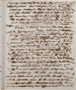 ornaments in Ivory, tortoiseshell Ebony, Elephants teeth & tortoiseshell, all more beautiful from the substance employed than the task exerted in modelling it the material. A cabinet of precious stones was really valuable but the jewels so totally unfit in their present state for Cornhill[?] ship windows that I was very near asking him when all was shown where the jewels were. I could not help thinking of Prof Miller of Cambridge having kindly offered to meet me at his museum to show a collection of diamonds valuable beyond computation, when I arrived the little man was standing beside a box with about 600 ordinary bits of glass stuck on pointed cards (I think). Unfortunately I was not shrewd enough to observe the double from box hasps keys & staples that retained the captive stones & now ceremoniously opened, for after an hours conversation on indifferent subjects, I was about to ask to see the diamonds & was only prevented by Henslow's coming in when conversation soon led me to infer that I had been an unconcerned spectator of the display of as much wealth as would build Henslow a new College.